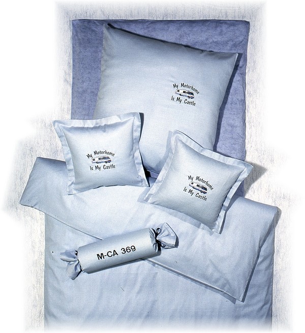 B2 Wohnmobil-Bettwäsche Garnitur MERAN hellblau "My Motorhome..."