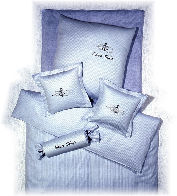 Feine Streifen, ausdrucksstarke Stickmotive und individuelle Namensstickereien verleihen dieser Bettwäsche ihre dezent elegante Optik.