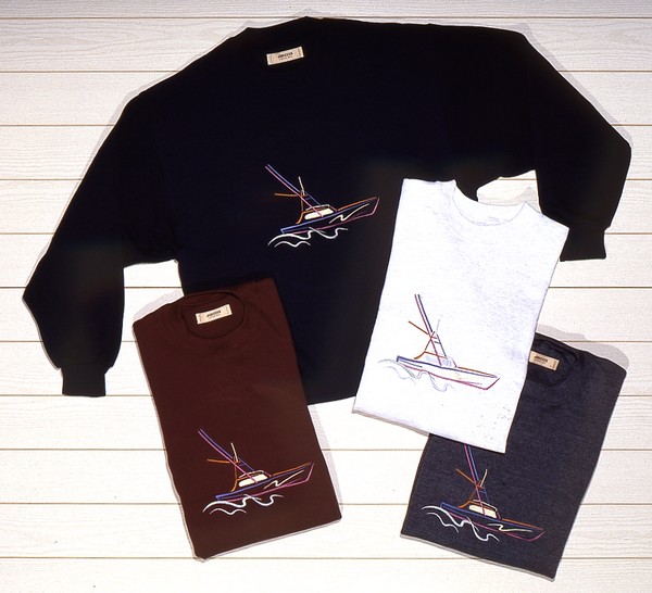 Für den Motoryacht-Skipper und seine Crew ist dieses Sweatshirt mit der abstrakten Motoryacht-Silhouette das passende Outfit zu Wasser wie zu Lande. Es kann von Damen und Herren getragen werden.