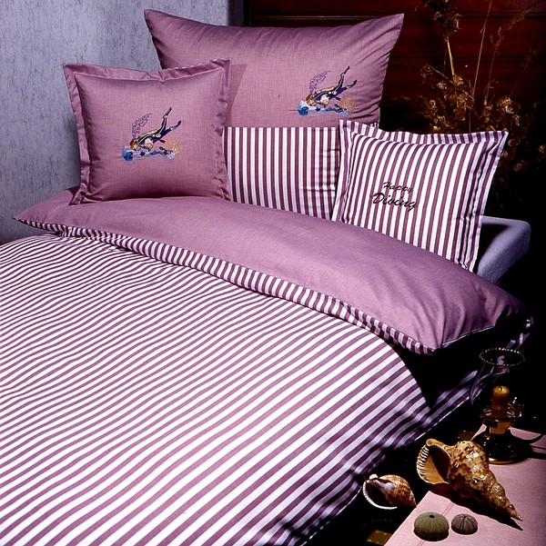Bestehend aus Bettbezug 135x200 und Kissenbezug 80x80 sowie Stickerei "Taucher" auf großem Kissen ( ohne Zierkissen und Nackenrolle)