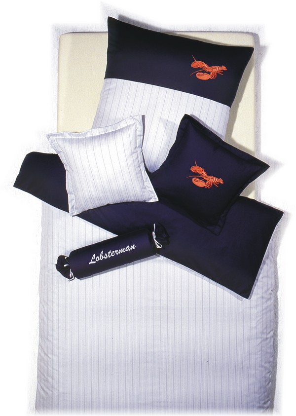 Bestehend aus Bettbezug 135x200 und Kissenbezug 80x80 sowie Stickerei "Lobster" auf großem Kissen ( ohne Zierkissen und Nackenrolle )
